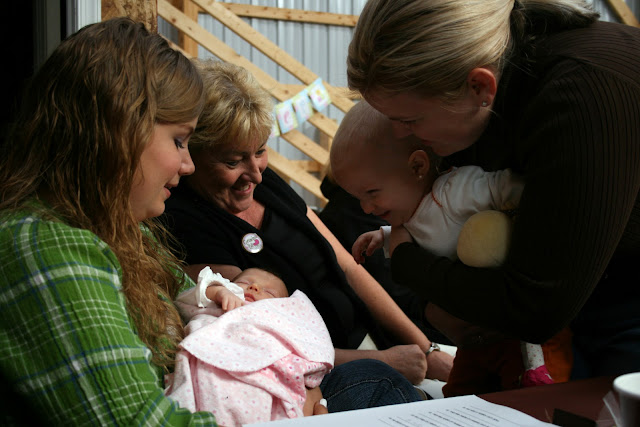 Baby meets baby at Amanda Maloney's baby shower. We played the baby pin game where each person gets a pin and if they are caught saying "baby," they lose the pin to the person who catches them. It's a struggle. Now, I can say baby as much as I want.